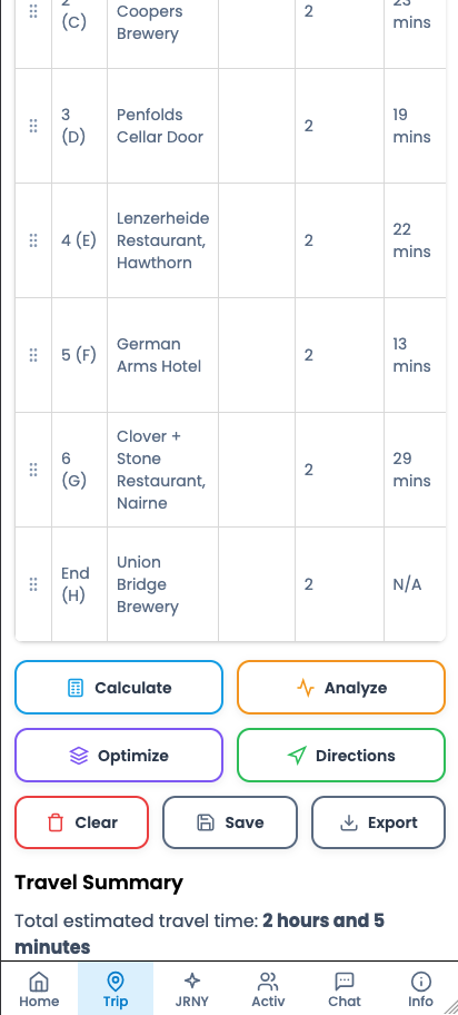 Trip Planner :allows a user to enter attraction destinations and calculate times to get from one place to the next with a google map link and exact times it will take to travel plus it analyses the itinerary and lets you know of any conflicts or when you could spend more time in a given location.